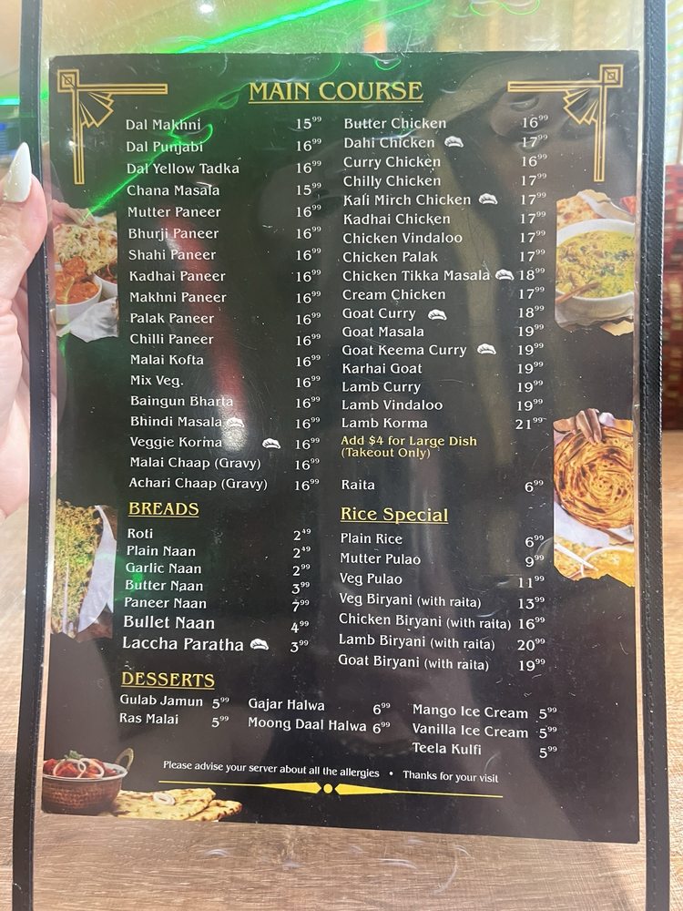 As you explore the menu, prepare for recommendations from attentive servers who are eager to guide you through the delicious offerings. Highlights include the Stuffed Potato Naan, a flavor-packed treat that promises to redefine your naan experience, and the Lamb Curry, which showcases robust spices and culinary finesse. For a street food kick, don't miss the Samosa Chaat, bursting with vibrant flavors and textures.
